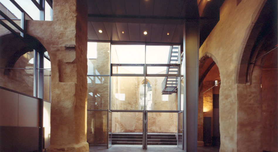 Im Wettbewerbsverfahren lag der Schwerpunkt auf der Sicherung und Erhaltung der als Denkmalwert befundenen Bausubstanz und deren Einbeziehung in eine eigenständige Architektur. Das Hauptmerkmal der architektonischen Idee liegt in der „trennscharfen“ Einfügung eines neuen transparenten Baukörpers, die ruinenhafte Topographie des Baudenkmals kontrastierend. Die räumlich versetzte Überlagerung von Baudenkmal und Neubau erzeugt spannungsvolle Wechselbeziehungen zwischen Innen- und Außenräumen.