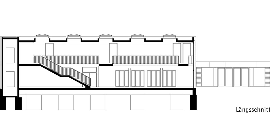 Der Schulerweiterungsbau fügt sich in die bestehende Situation zwischen Schulgebäude und Turnhalle ein, und definiert gemeinsam mit diesen bestehenden Bauten eine neue, räumlich klar gefasste Schulhofsituation. Ein eingeschossiger, transparenter Baukörper verbindet das bestehende, dreigeschossige Schulgebäude mit dem zweigeschossigen Erweiterungsbau.